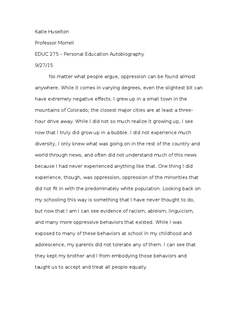Educational Autobiography 1 Pdf Educational Autobiography I Would Categorize My Educational Experiences As Positive Mainly Because I Was Lucky Enough Course Hero
